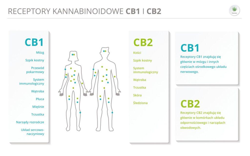 Okazało się jednak, że receptory te zlokalizowane są również w narządach obwodowych takich jak: serce, płuca, przewód pokarmowy, grasica, pęcherz moczowy, macica, łożysko, jądra, nasieniowody oraz tkanka tłuszczowa, a nawet w komórkach układu odpornościowego. Z kolei receptory CB2 zlokalizowane są przede wszystkim w układzie odpornościowym: w migdałkach, w śledzionie i w różnych liniach komórkowych układu immunologicznego, szczególnie na limfocytach, komórkach NK (ang. natural killers) oraz na monocytach, makrofagach, mastocytach i komórkach mikrogleju.